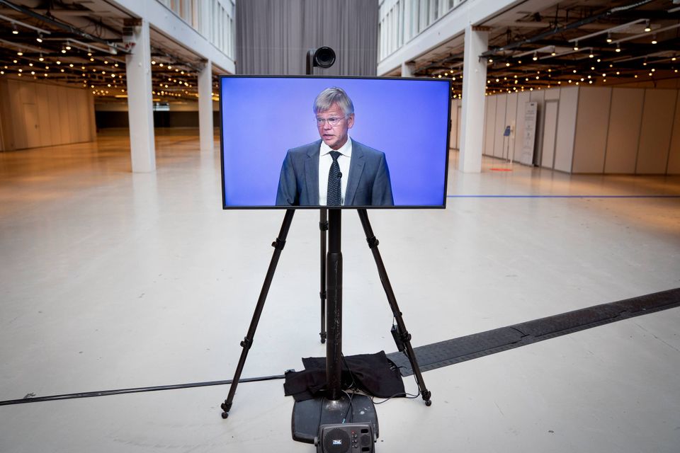 Generalforsamlingen var delt op i syv mindre lokaler rundt om i et ellers mennesketomt Bella Center, hvor bestyrelse, aktionærer og journalister sad opdelt i mindre grupper.