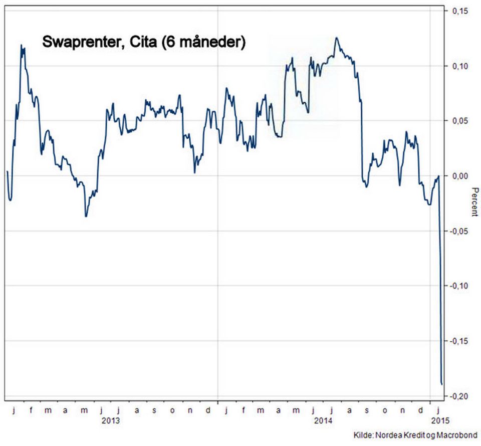 Renten på det nye lån udregnes efter den såkaldte Cita-rente, der er en rente, som bankerne bruger, når de låner penge til hinanden. Denne rente er onsdag faldet markant og er nu helt nede i minus 0,18 pct. Men der er forskel på det rentetillæg, som realkreditinstitutterne garanterer investorerne. Tillægget betales af lånerne.