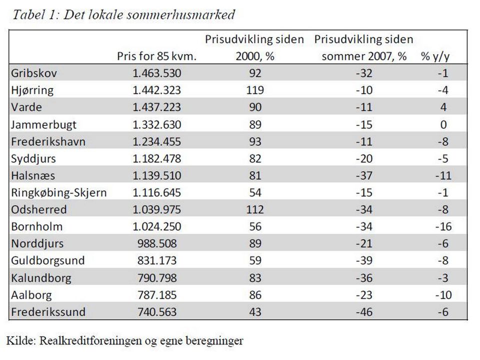 »Det er ikke overraskende set i lyset af, at sommerhuse mere har karakter af luksusgode i modsætning til parcelhuse og ejerlejligheder, som også dækker et reelt boligbehov. Netop luksusgoder er typisk mere konjunkturfølsomme,« lyder en forklaring i rapporten fra Realkredit Danmark.