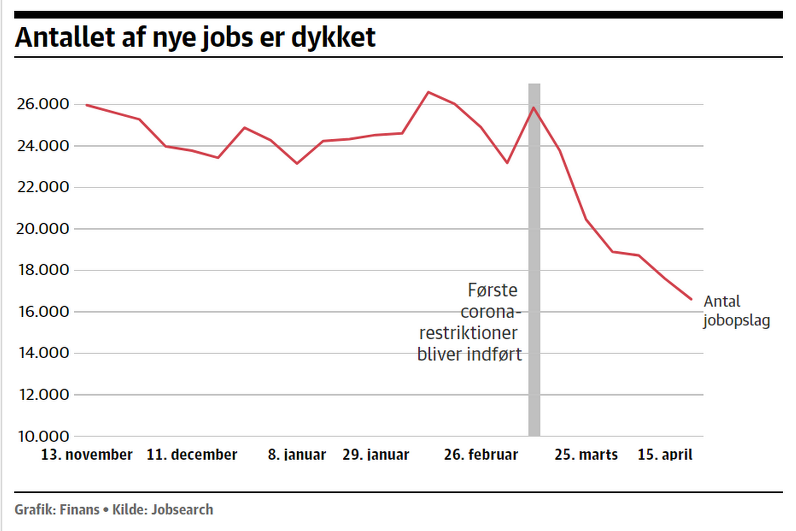 Mere fra Jobsearch17. maj 2020ErhvervAntallet af jobannoncer viser positive tegn24. apr. 2020ØkonomiAntallet af jobopslag er styrtdykket efter corona-nedlukning