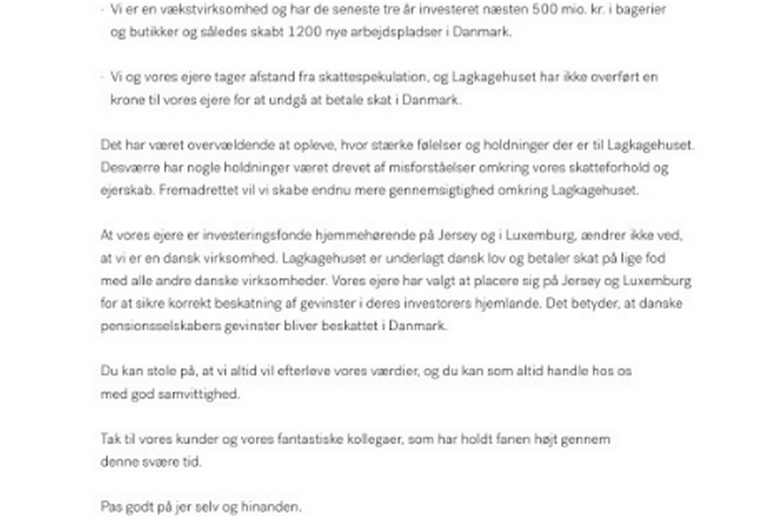 Mere fra Lagkagehuset14. apr. 2026ErhvervEfter Just Eats exit: Nu ruller amerikansk gigant ind i Danmark18. jun. 2025ErhvervLagkagehuset er stadig en underskudsforretningErhvervTo kendte kæder rykker sammen i kampen om forbrugerneErhvervDansk bagerkæde med butikker i tre lande: Digitalt salg af brød og kager rykker frem ErhvervEfter stor optur: Corona-effekten er forsvundet hos en lang række danske virksomhederErhvervLagkagehuset taber kæmpe millionbeløb: »Det koster penge at åbne bagerbutikker« ErhvervDer skal fart på: Dansk møbelkoncern med 340 butikker skifter udErhvervWolt rykker ind i flere supermarkederNavneNy topchef i Lagkagehuset: »Når jeg har fri, er jeg i høj grad en familien-først-mand«ErhvervSlår nyt brød op: Her er Lagkagehusets nye topchefErhvervBetalingskrig: Kæder kæmper for at holde snor i kunders betalingerErhvervLagkagehuset får nyt kæmpeunderskudWeekendPå tværs: Grænsehandel er en lykkefølelse – ikke en økonomisk lovErhvervLagkagehuset blødte videre i coronaramt 2021KarriereGlobale danskere: Hun står i spidsen for et amerikansk erobringstogt med Manhattan som afsætErhvervKagefabrikant: »Skynd dig at købe en citronmåne, før den bliver for dyr«NavnePeter Bruun: »Det, der motiverer mig ved en virksomhed, er at sætte en retning og engagere et team«ErhvervLagkagehusets stiftere brænder millioner af på kaffekædeErhvervDansk kæde vil udvide i London og New York efter underskud på en kvart milliardErhvervLagkagehuset får skåret toppen af omsætningen – ender i stort minusErhvervLagkagehuset får ny direktørErhvervKampen om butikkernes husleje spidser tilErhvervOmstridt nanostifters holdingselskab under konkurs – igenErhvervMedie: Ejer af Lagkagehuset har budt på Leo PharmaErhvervLagkagehuset får tilført nyt trecifret millionbeløb fra ejerneErhvervLagkagehusets direktør frygter at miste hverdagssalgetErhverv208 aftaler og 206 løsninger: Butikskæder kræver nye husleje-aftalerErhvervLagkagehusets ejer rejser kæmpefondErhvervLagkagehuset-stiftere opgiver planer om at indtage DanmarkDebatLagkagehuset kan ikke tale sig fra ansvar og lederskabDagmar Mailund RebsdorfErhvervLagkagehusets danske forretning i største tab nogensindeErhvervMens myndighederne stadig undersøger regnskaberne: Omstridt nanofirma vil hente ny kapitalPodcastBundlinjen: Hvor længe holder hjælpepakkerne, hvorfor holder DI-direktør fast i krisen og har Lagkagehuset rent mel i posen?Maria KehletErhvervEjer bag Spies droppede eksotisk ø: »Indså at vi ikke kunne aflive den sejlivede myte«ErhvervLagkagehuset svarer igen i helsidesannonceErhvervUgen på tværs: Momsmakroner og browniebeskatningErhvervEjede Lagkagehuset fra eksotisk ø: »Jeg er ked af denne debat«ErhvervPensionskasser investerer milliarder gennem udskældte landeForsideSkattely og hjælpepakker: Sådan havnede Lagkagehuset i shitstormenDebatEfter shitstorm mod skattely: Moralsk skat er en naiv illusionDagmar Mailund RebsdorfErhvervLagkagehuset er havnet i et stormvejr på de sociale medierErhvervEksperter: Penge fra hjælpepakker kan gå til skattely-selskaberErhvervCoronakrisen udløser billigere husleje for detailbutikkerErhvervMinister efter Lagkagehuset-ballade: Regeringen overvejer nye initiativerErhvervNyt exit: Nu forlader også formanden skuden i omstridt nanoselskabErhvervLagkagehusets stifter sadler om: Nu bager han brød i Sydfrankrig ErhvervLagkagehuset og Meyers Bageri vil levere bagværk direkte til dørenErhvervLagkagehuset-makkerpar frasælger kaffefirma for millionerErhvervAnders Holch undskylder - og betaler husleje for danske butikkerErhvervAdvokater afviser at lejere har lovhjemmel til at udsætte eller stoppe betaling af husleje